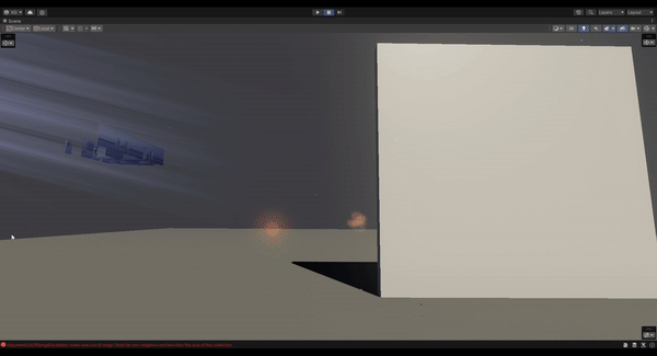 When it came to particles, I needed to know what would be in an abandoned building and what would be useful for amplifying any of our other assets. The first one I show in the gif is my god rays that I made the emitter in photoshop where I made it have a soft edge and then I stretched the particle to get the faded look. I also figured there would be some frayed wires and some leaking water so I added those in to help tie in the look of the place being poorly maintained. Lastly I wanted to create a vfx that would amplify and draw the attention of the player to the Phoenix Chip that they are looking for.